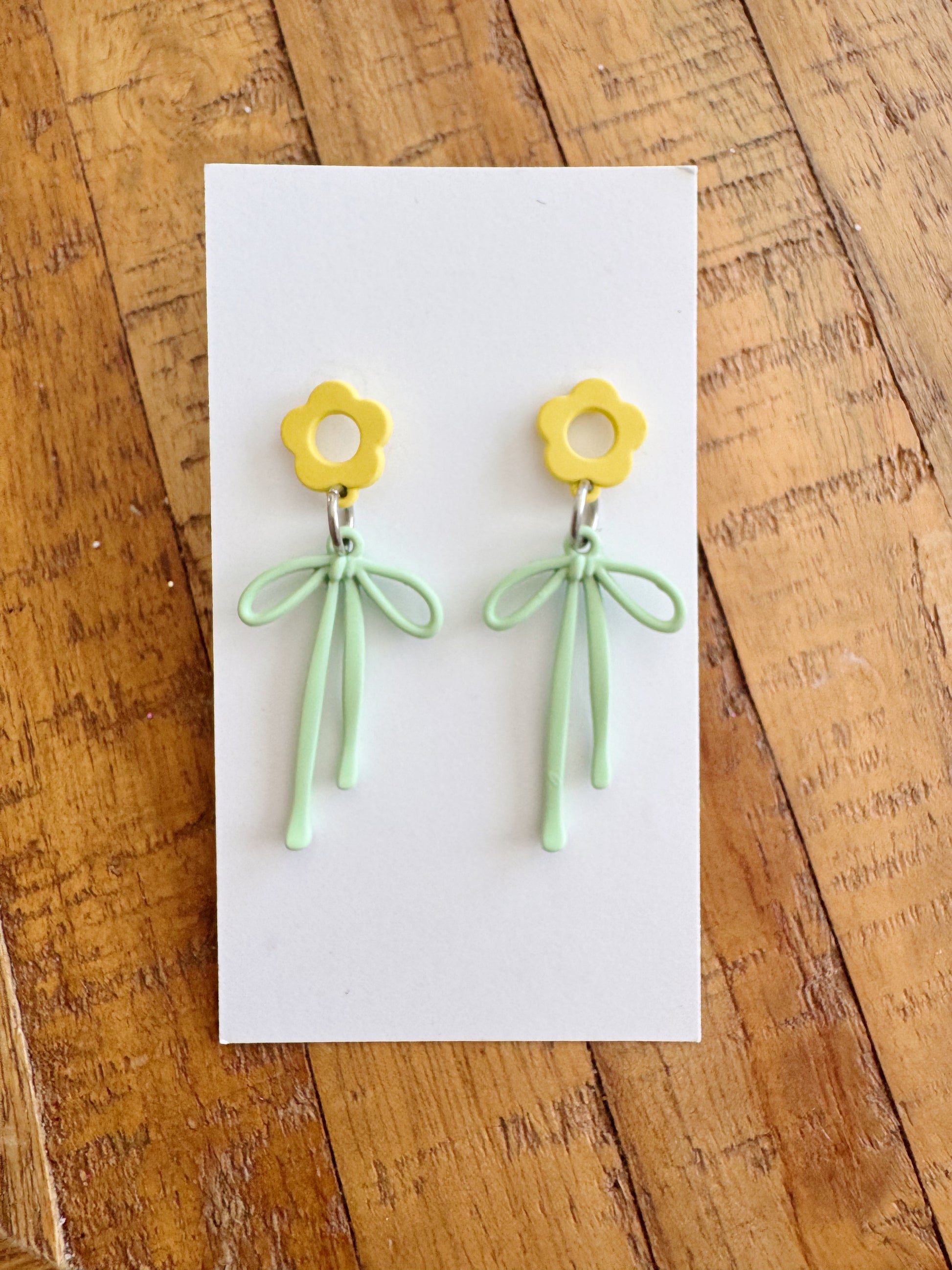 Doux chagrin - Boucles d’oreilles fleurs printemps Jaune & Vert